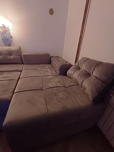 Ugaona garnitura na razvlačenje – siva, sa luksuznim plišanim/velur presvlakama.