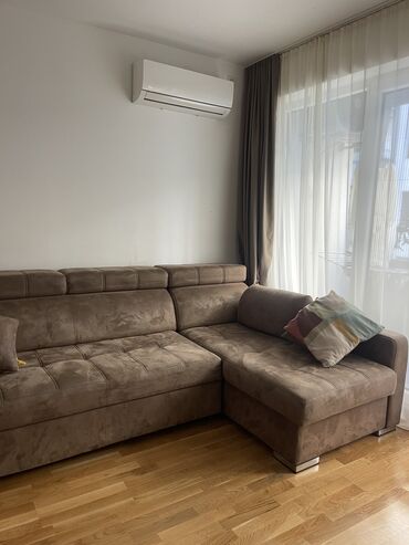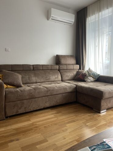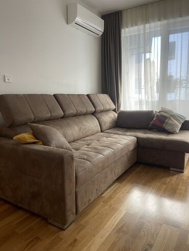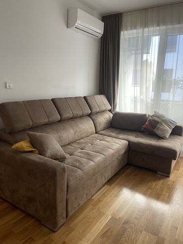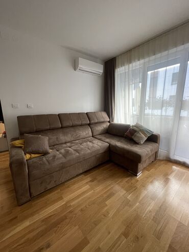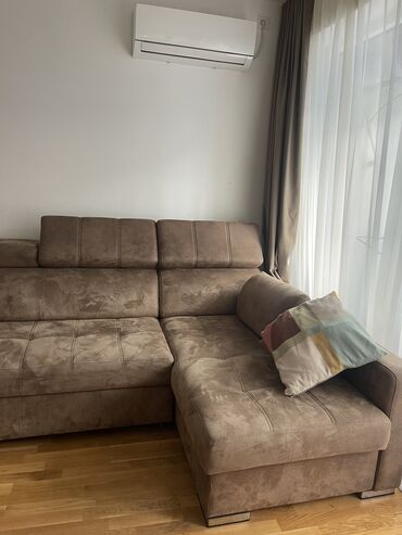 Ugaona garnitura Claudia na razvlacenje poseduje sanduk za posteljinu! Cena je 350 eura. Dimezije su 2.70 x 2.70 Ugao može da bude leva ili desna strana Moguć je prevoz uz dogovor! Za informacije p...