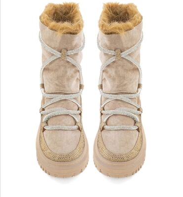 Ženske zimske čizme sa krznom - Materijal: mekana antilop koža u bež/sivoj nijansi - Postava: toplo veštačko krzno po celoj unutrašnjosti, uključujući jezik i gornji deo - Đon: crni gumeni đon sa ...