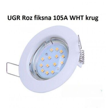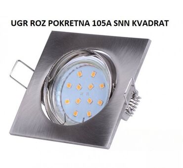 DrugoUgradna rozetna fiksna 105A SNN krug. Ugradna Rozetna sa grlom MR16. Dostupne boje: Mat Inox, bela, chrome, SNN. Ostale varijante uključuju: UGR ROZ FIKSNA 105A WHT KRUG (220 din), UGR ROZ POKRETNA 105A CHROME KRUG (256 din), UGR ROZ POKRETNA 105A SNN KVADRAT (295 din).