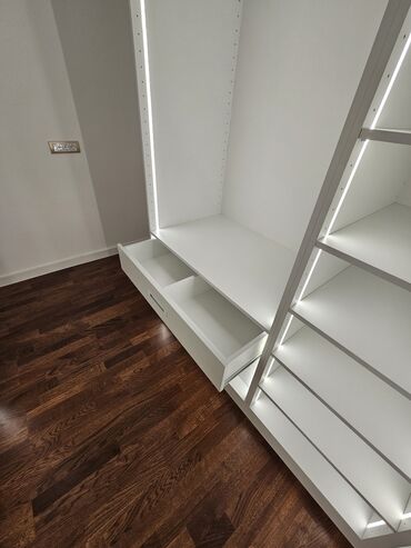 - Moderan, beli sistem otvorenih garderobnih elemenata u G obliku
