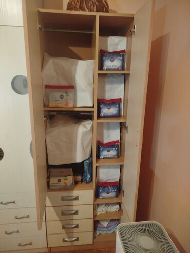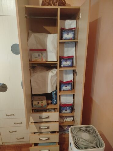 - Sredina: uski visoki kabinet sa sistemom plitkih izvlačnih polica/pregrada idealnih za sitnice, peškire, kozmetiku ili posteljinu.