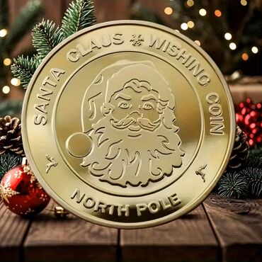 Elegantni zlatni novčić sa reljefnim motivom Deda Mraza i bozicnih motiva donosi pravi duh praznika. Savršen je kao dekoracija, poklon ili sitnica za božićno iznenađenje.