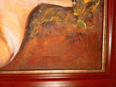 - Motiv: ženski akt u ležećem položaju, izveden ekspresivnim, pastoznim potezima četke
