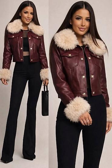 • Ženska kraća jakna sa veštačkim krznom – biker/aviator stil. -