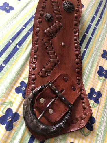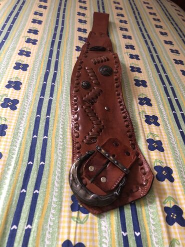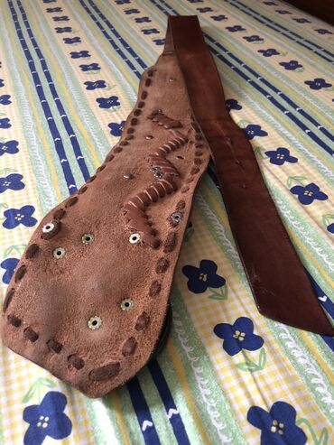 BraonUnikatni kožni kaiš ručni rad iz Splita, u odličnom stanju. Dužina kajša je 105cm, širina kod šnale je 11cm, kod rupica je 4cm.