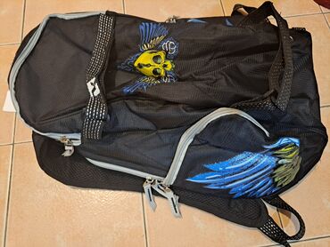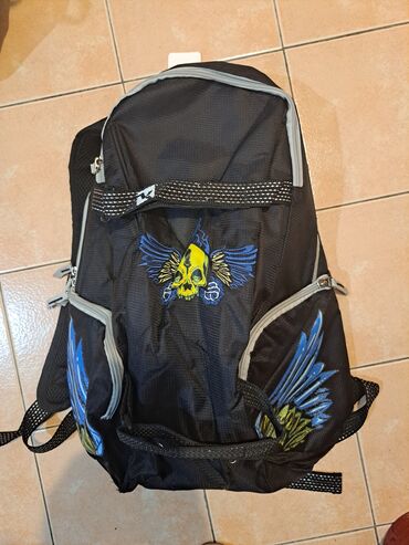 Uniseks ranac crne boje, ukrašen motivom lobanje sa krilima i plamenom u žuto-plavoj kombinaciji. Ranac poseduje glavni odeljak sa rajsferšlusom, bočne džepove sa rajsferšlusom i dodatne mrežaste džepove sa strane za flaše ili sitnice. Ergonomski oblikovane naramenice obezbeđuju udobnost prilikom nošenja, a traka na prednjoj strani ranca nudi dodatnu sigurnost i mogućnost kačenja opreme. Pogodan je za svakodnevnu upotrebu, izlete, sportske aktivnosti ili putovanja.