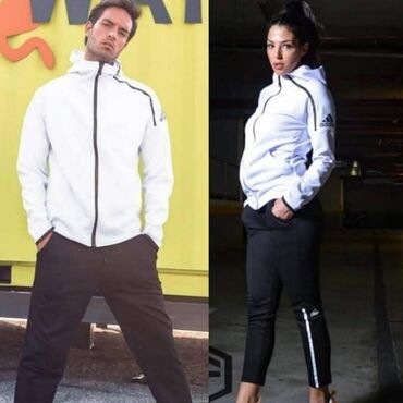 Druga veličinaUniseks sportska trenerka sa kapuljačom i dugim rukavima, idealna za sportske aktivnosti ili opušteno svakodnevno nošenje. Trenerka je dostupna u crnoj, sivoj i beloj boji, a svaki model ima kontrastne pruge duž rukava i nogavica, kao i beli brend logo na ramenu. Donji deo trenerke su sportske pantalone sa elastičnim pojasom i blago suženim nogavicama koje pružaju udobnost i slobodu kretanja. Zatvaranje gornjeg dela je rajsferšlusom. Pogodna je za u setu za nju i njega razne sportske aktivnosti, rekreaciju ili kao udobna odeća za slobodno vreme.