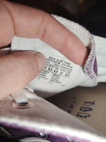 - Boja: ljubičasta sa belim pertlama i gumenim kapicama