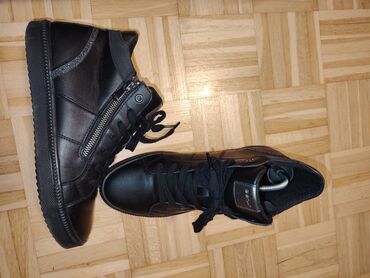 - Boja: crna, mat koža/eko-koža sa diskretnim sjajnim detaljem oko pete