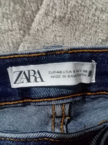 Farmerke brenda Zara, veličine EUR 40, USA 8, MEX 30. Proizvedene su u Bangladešu. Izrađene su od plavog teksasa, sa klasičnim džepovima i šavovima. Farmerke su praktične za svakodnevno nošenje.