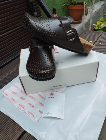 - Materijal: prirodna koža na gornjištu, anatomsko oblikovano kožno uložje sa plutenom potporom.