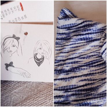 - Dizajn: plavo‑beli “tie-dye”/prugasti print.