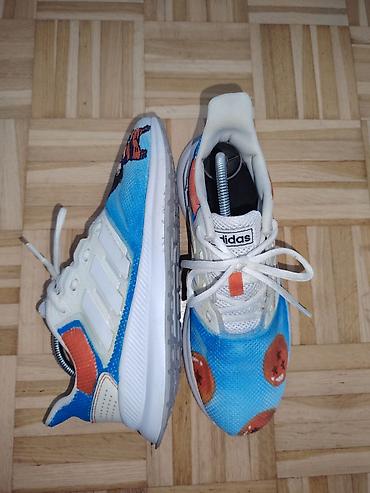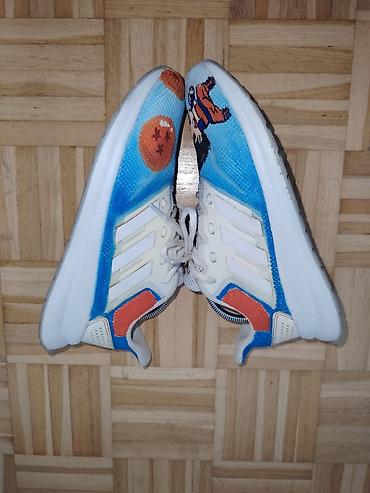 Adidas patike sa unikatnim printom inspirisanim anime tematikom. UG 24,5cm Gornjište je od mrežastog tekstila u plavim tonovima sa motivima narandžastih zmajevih kugli i stilizovanog lika na prednjem delu. Bočne strane imaju prepoznatljive tri Adidas pruge u beloj boji, a oko pete i na kederima su narandžasti i plavi akcenti. Jezik sa Adidas etiketom, klasično pertlanje i mekano postavljen okovratnik za komfor. Đon od lagane pene sa izraženim međuđonom pruža dobro amortizovanje, a spoljašnji đon ima gumene segmente za prianjanje. Dinamičan, razigran dizajn idealan za svakodnevno nošenje i ljubitelje anime estetike.