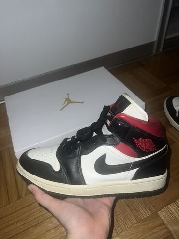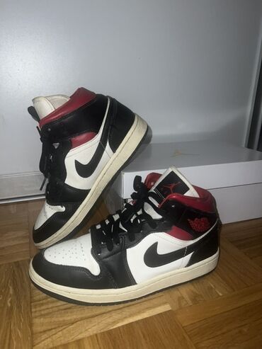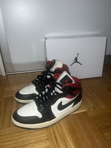 Ikoničan AJ1 dizajn u kontrastnoj “Bred/Black-White” paleti, pogodan za svakodnevno nošenje ili kolekcionare.
