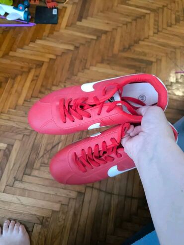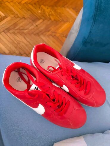 CrvenaCrvene patike sa belim bočnim logoom, veličina 40.