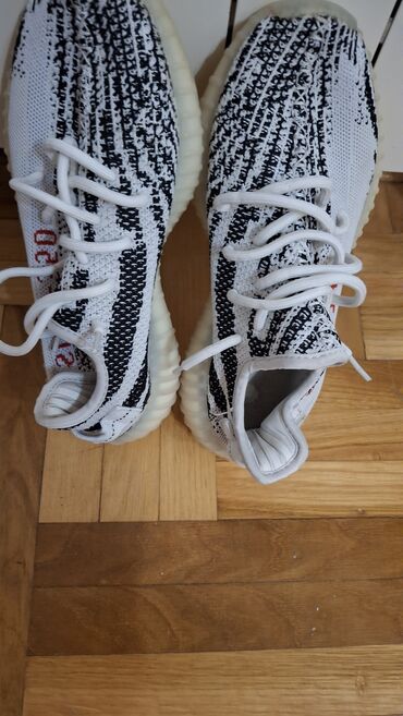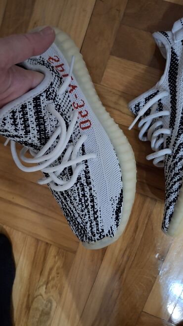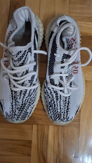 - Colorway: Zebra – bela/crna Primeknit šara sa crvenim “SPLY-350” natpisom