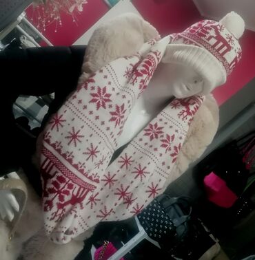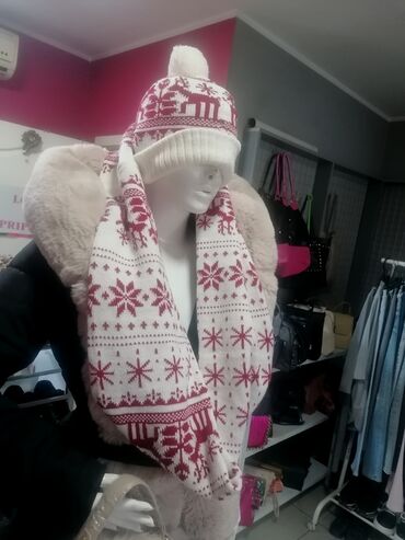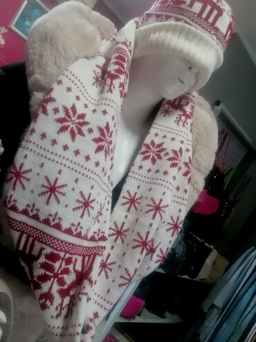Napomena: komplet je vizuelno uparen – kapa i šal imaju identičan uzorak za skladan izgled.