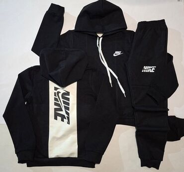 NIKE komplet trenerke – dukserica s kapuljačom i donji deo 16 - Model: sportski komplet (gornji deo s kapuljačom i jogger pantalone) - Dizajn: veliki Nike logo na grudima i leđima, Nike print na bu...