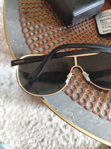 VersaceNaočare za sunce u stilu avijatičarskih naočara, sa crnim sočivima i tankim zlatnim okvirom. Na slepoočnicama se nalazi diskretni logo brenda "VERSACE", dok su drške naočara crne boje. Predstavljaju dodatak koji pruža zaštitu od sunca i stilizovan izgled. Pogodne su za svakodnevnu upotrebu i dopunjuju razne odevne kombinacije.