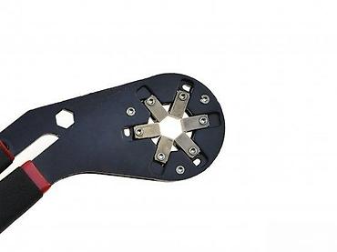 - Višenamenski ključ sa samopodešavajućom glavom: šest pomičnih čeljusti automatski obuhvataju šrafove i matice različitih profila i veličina (od 12 do 21 mm).