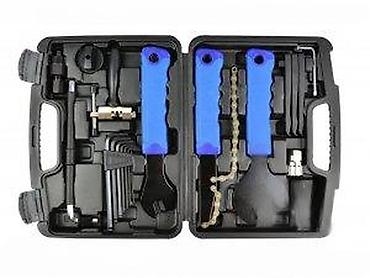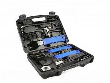 - Kompletan servisni set za popravku i održavanje bicikla, smešten u čvrst plastični kofer sa ležištima za svaki alat.