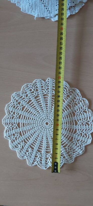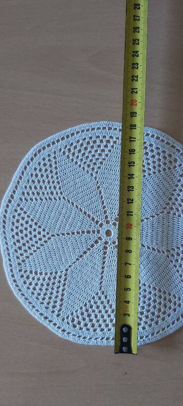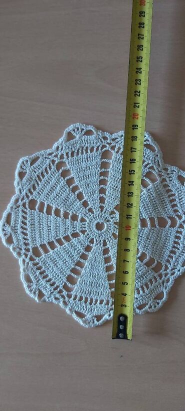 Ručni heklani stolnjaci i miljei – više modela - Tradicionalni ručni rad, nežna pamučna pređa u beloj/ekru nijansi - Motivi: cvetni i geometrijski (kvadrati, dijamanti, rozete) - Fini mrežasti vez...