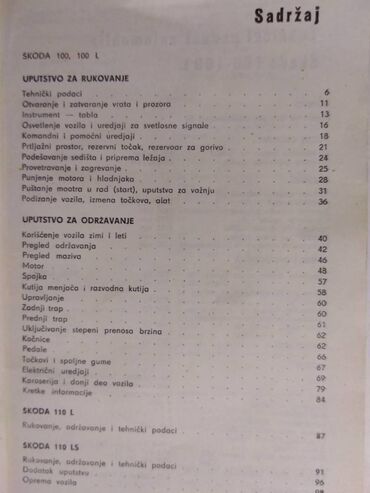 O trošku kupcaPokupiti na licu mestaUputstvo o rukovanju i odrzavanje za Skodu 100-100L-110L-110LS, 100 str.srp.