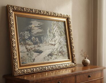 Svaki ubod igle priča priču o strpljenju, ljubavi i veštini starih majstora. „Zimska noć“ prikazuje spokojnu zimsku idilu, savršenu za dom u kome se ceni tradicija, toplina i umetnička vrednost.