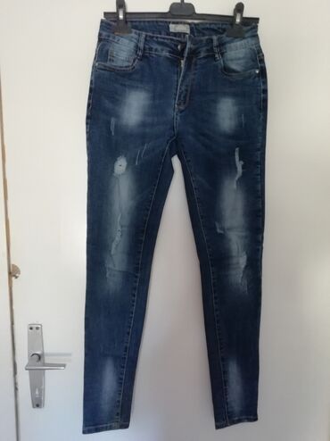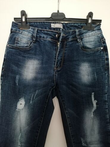 Ženske farmerke – - Dva para teksas pantalona u različitim nijansama plave: svetlija, srednja i tamnija. - Klasičan kroj sa standardnim džepovima; jedan model ukrašen nitnama oko prednjeg džepa. ...