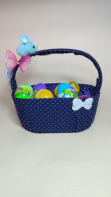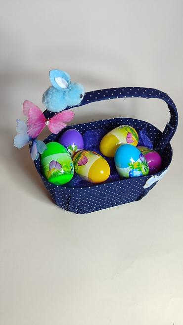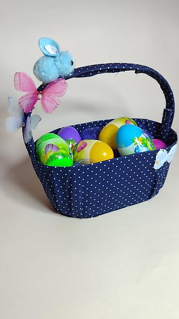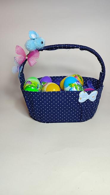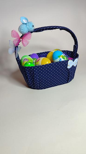 Uskršnja dekorativna korpica sa jajima - Tkanina: tamnoplava sa