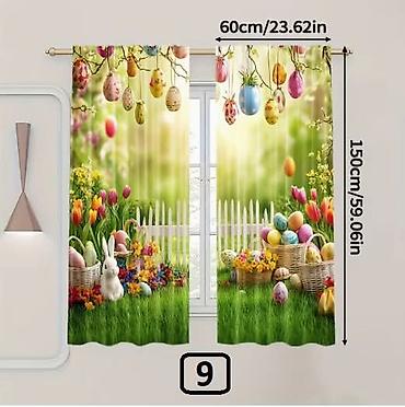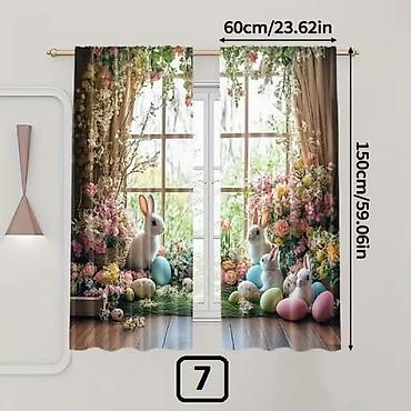 Dekorativne zavesice sa uskršnjim motivom - Tip: panel zavese (set od 2 panela) - Dimenzije po panelu: 60 cm x 150 cm (23.7 in x 59.1 in) - Ukupna širina kompleta: 120 cm - Dizajn: dva zeke pored ...