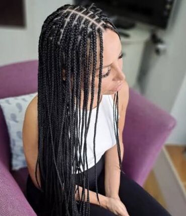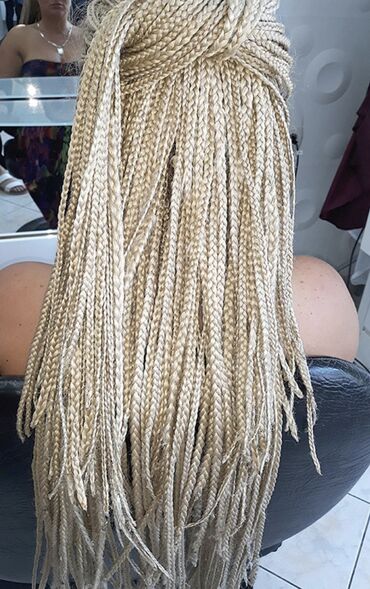 Profesionalno pletenje afro kikica (box braids) u više stilova i debljina. Moguć izbor dužine i boje: klasična crna, plava/blond i melirani tonovi. Pažljivo sekcionisanje i uredni razdeljci za ravnomeran izgled, lagane i fleksibilne pletenice pogodne za različite frizure (visoka punđa, polupodignuta kosa, raspuštene). Sintetički vlakna sa prirodnim sjajem, glatke završnice.
