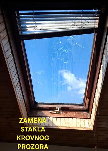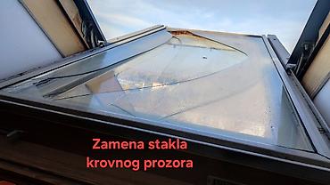 Napomena: Na fotografijama je prikazano oštećeno staklo krovnog prozora i usluga njegove zamene.
