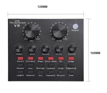 12 vrsta elektronskih zvukova, 18 vrsta zvučnih efekata, 6 vrsta efektivnih režima, podešavanje veličine odjeka, podešavanje jačine zvuka mikrofona, podešavanje jakog i niskog zvuka, podešavanje jačine zvuka, podešavanje jačine muzike, podešavanje jačine zvuka (tj. Funkcija vraćanja uha), kontrola jačine zvuka (funkcija slušalica).