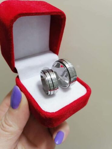 Modni nakit – više modela - Srebrni prsten Gucci: široka banda, laserski graviran uzorak, sa karakterističnom trobojnicom (zelena–crvena–zelena) i ugraviranim logotipom „GUCCI”. Moderan uniseks di...