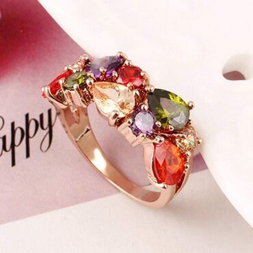 Četvrtast srebrni prsten,roze-gold boje sa svih strana su cirkoni i svi su tu, nijedan ne fali. Masivan, visine 12mm, veličina 17. Efektan i prelep uživo, ali nažalost mali. Nije nošen.