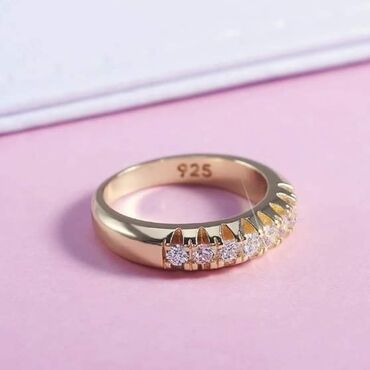 Četvrtast srebrni prsten,roze-gold boje sa svih strana su cirkoni i svi su tu, nijedan ne fali. Masivan, visine 12mm, veličina 17. Efektan i prelep uživo, ali nažalost mali. Nije nošen.
