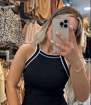 Crna ženska majica bez rukava - Klasican, ravan kroj sa širom okruglom kragnom - Glatka, lagana tkanina koja lepo pada - Dužina do kukova, blago zaobljen porub napred i pozadi - Leđa sa funkcional...