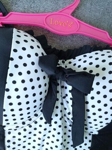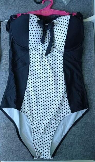 Nov kupaći kostim, zanimljiv, atraktivan. Iznutra na beloj postavi,gde se vade jastučići, zakačena je jedna mala nit noktom. Veličina je L.