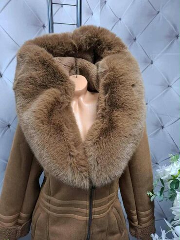 Naslov: Uni veličina — 9600 din Opis: Elegantna ženska jakna u smeđoj boji sa bogatim krznom u kontrastnoj zlatno-bež nijansi. Model sa širokim reverima od krzna, krznenim manžetnama i krznenim ru...