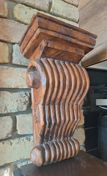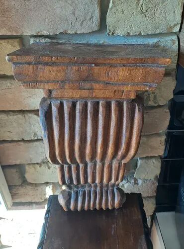BežVelika, drvena, rucno radjena konzola od kvalitetnog drveta. Dimenzija gornje ploce 17x21cm i visina 39cm.