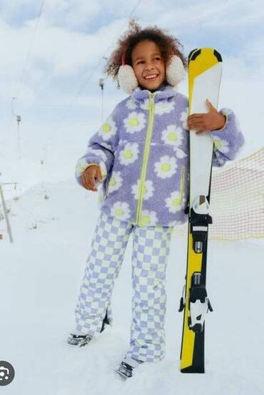 Zimski/skih set za devojčice - Jakna anorak kroja sa kapuljačom - Brend: Reserved (etiketa vidljiva) - Šara: pastelni akvarel (roze, plava, zelena, ljubičasta) - Topla postava od mekanog flisa u k...