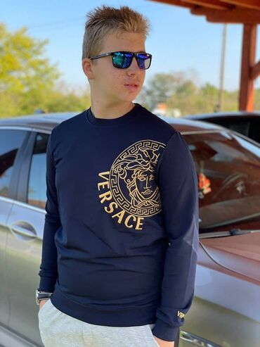 Siva dukserica s kapuljačom - Boja: svetlosiva sa crnim detaljima - Dizajn: kengur džep napred u crnoj boji, crna aplikacija/zakrpa na desnom rukavu - Kapuljača sa učkama (podesivim kanapima) - Ru...