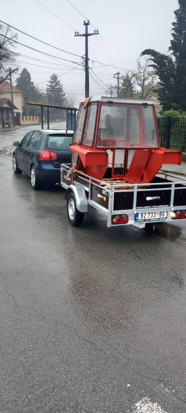 Na prodaju očuvana kvalitetna šlep prikolica sa aerodinamičnim prednjim delom cerade (4×2m). Nemački kvalitet, nosivost 2336kg, ne krivi se kao ostale, ravna platforma (gumirana), navoznice ispod...