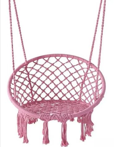 Viseća stolica sa stalkom – boho dizajn - Okrugla viseća stolica od čvrstog užeta u makrame stilu, sa resama. - Stabilan metalni ram A‑oblika, obložen za dodatnu izdržljivost i sigurnost. - Dvostr...5 000 RSD