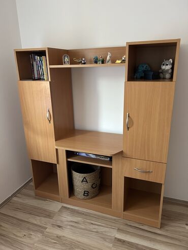 Višenamenski drveni regál/sto za dnevnu ili dečiju sobu u boji bukve.
