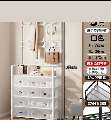 - Gornji segment: praktična garderobna zona sa više kukica za torbe, marame, slušalice, kaiševe i kapute; prečka za kačenje.