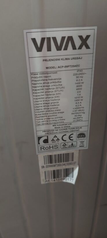 - Više režima rada: hlađenje, ventilacija, automatski rad; podesiva brzina ventilatora
