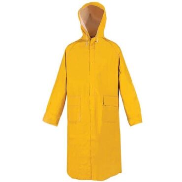 Radni mantilVodootporna kišna kabanica sa kapuljačom, proizvedena od 100% poliestera sa obostranim slojem PVC-a, šavovi su vareni, dostupna u dve boje. Ventilacija ispod leđa i ispod pazuha. Poseduje unutrašnje elastične manžetne na rukavima.